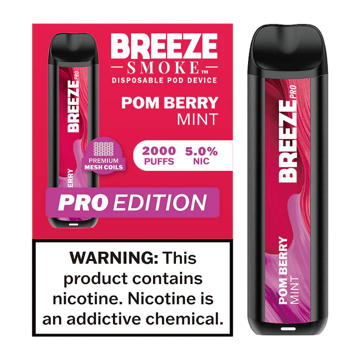 Experience the unique blend of Breeze Pro – Pom Berry Mint, featuring sweet pomegranate, mixed berries, and cool mint. This premium disposable vape delivers a complex, refreshing flavor that invigorates your senses. Moreover, the sophisticated combination provides a perfect balance of fruity sweetness and minty freshness.